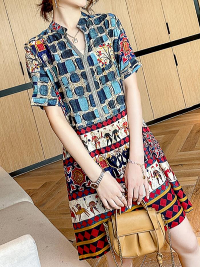 Simple Loosen Solid Cap Sleeve Knee Dress