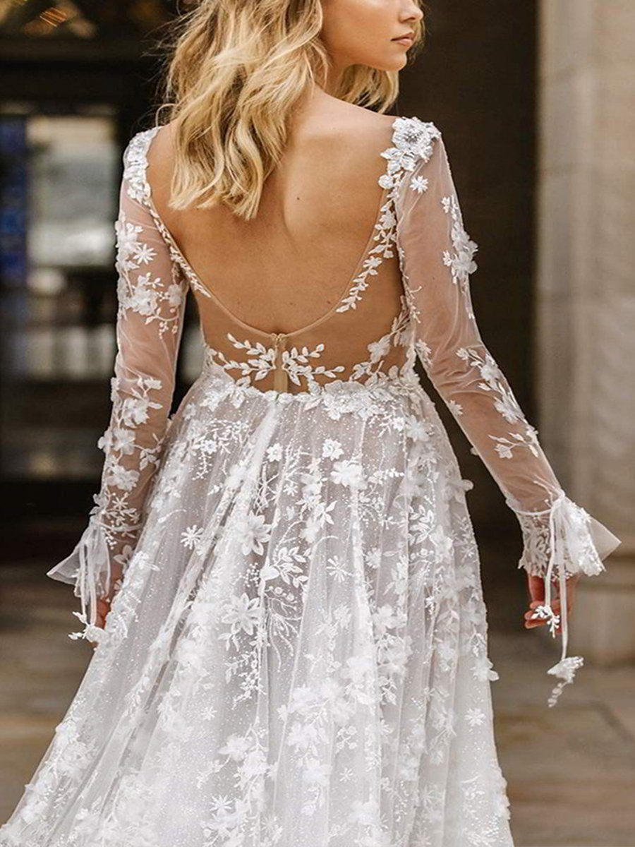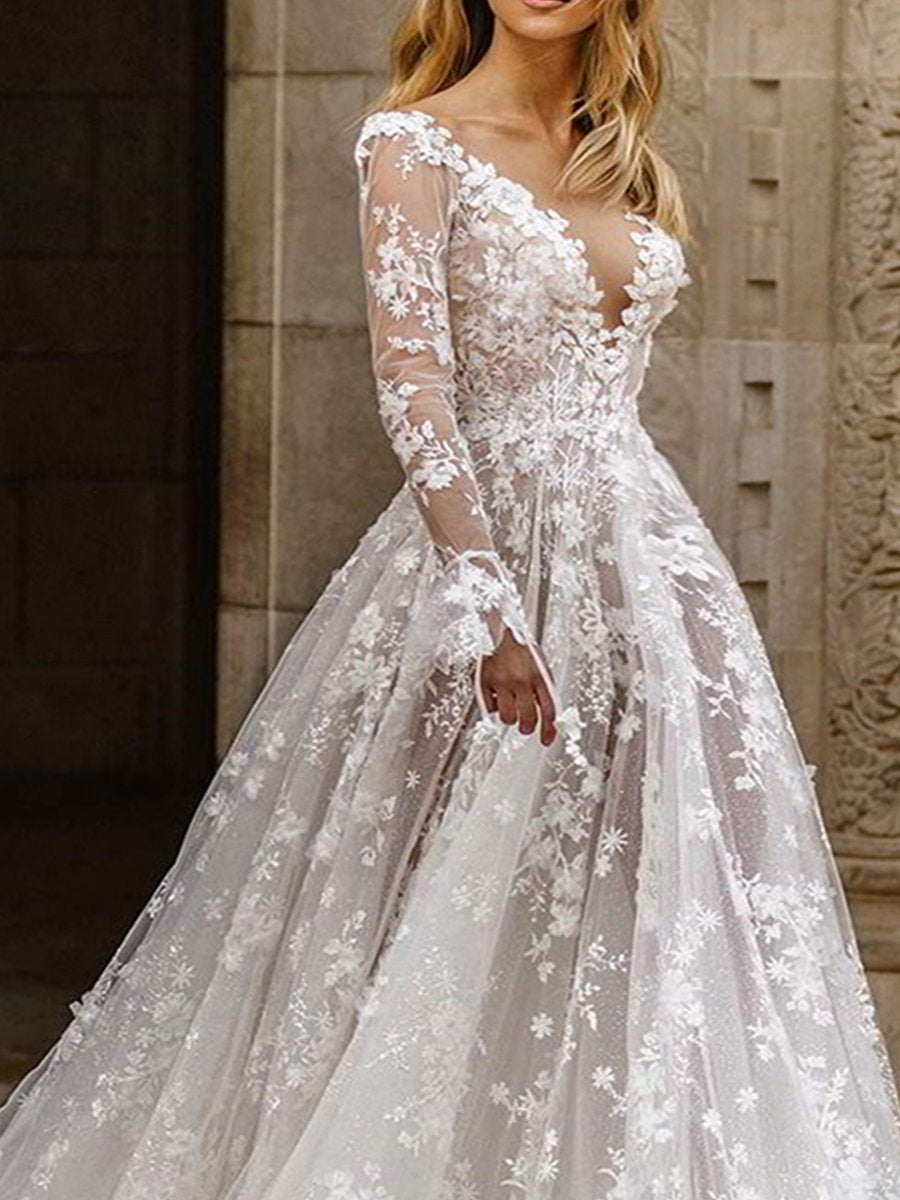 White V-neck Long-sleeved Simple Dress In The Long Section