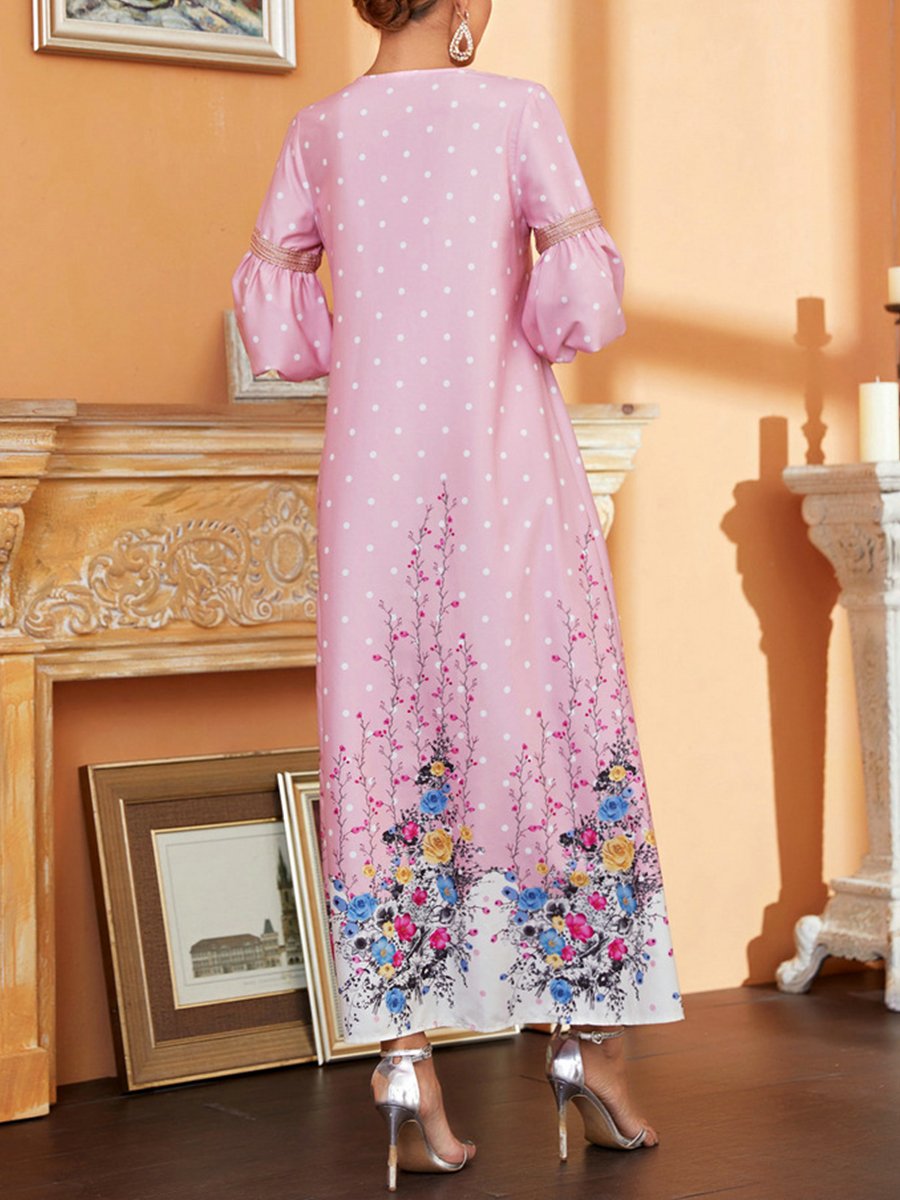 Pink Printed Bubble Sleeve Dress