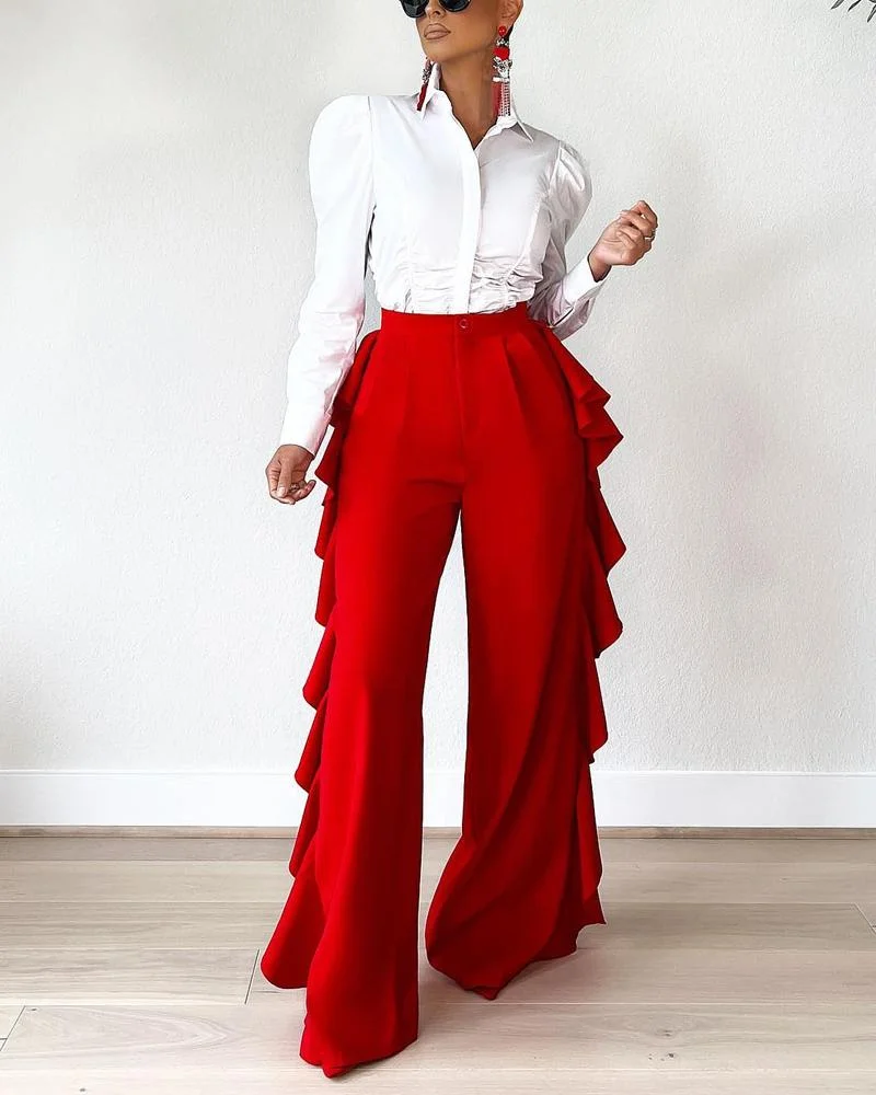Pleated Shirt Design Pants Set