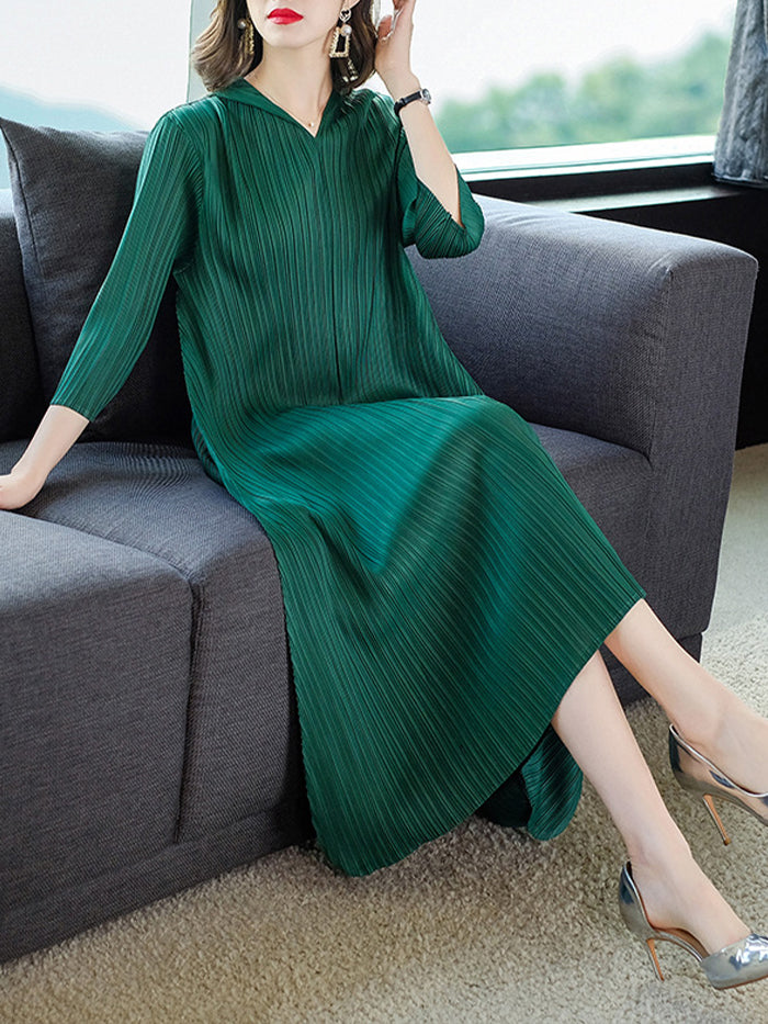 White V-neck Long-sleeved Simple Dress In The Long Section