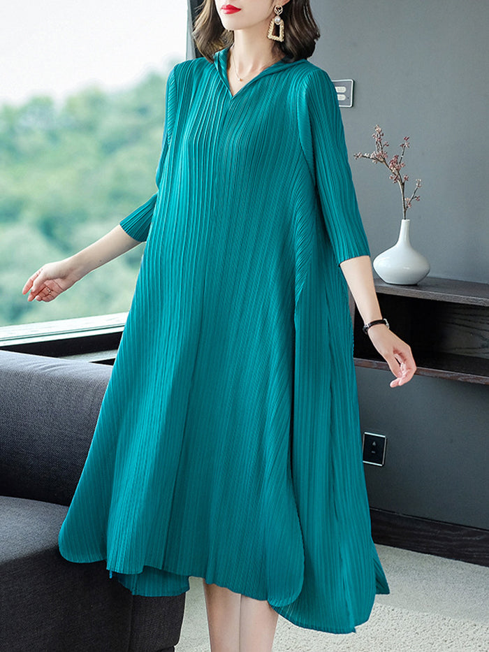 Simple Loosen Solid Cap Sleeve Knee Dress