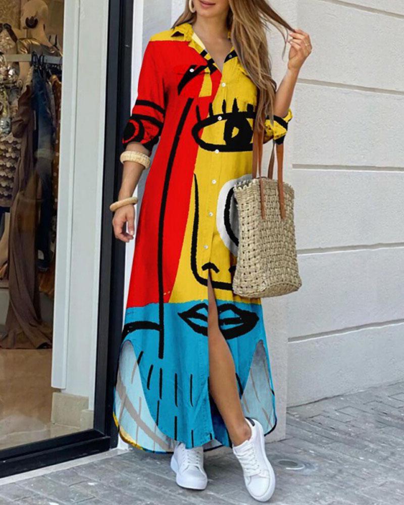 Positioning Print Long Dress