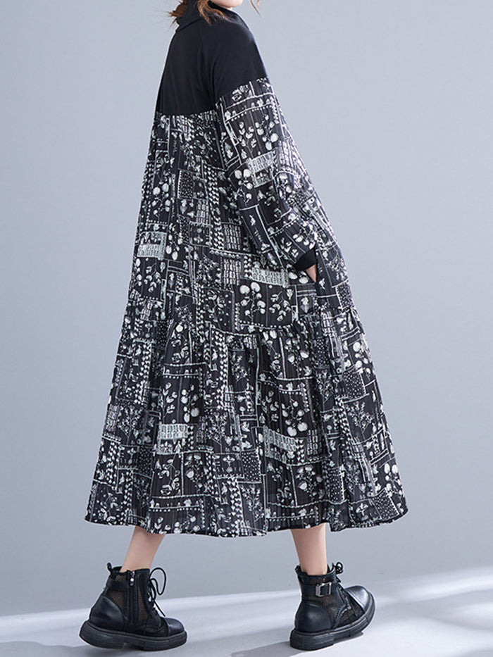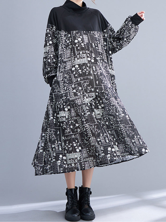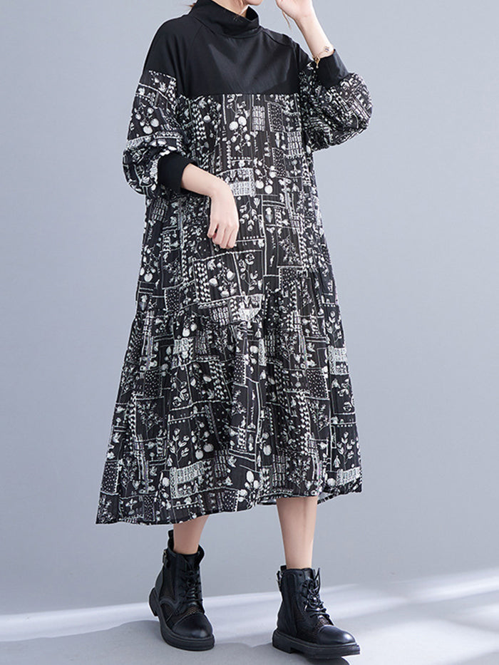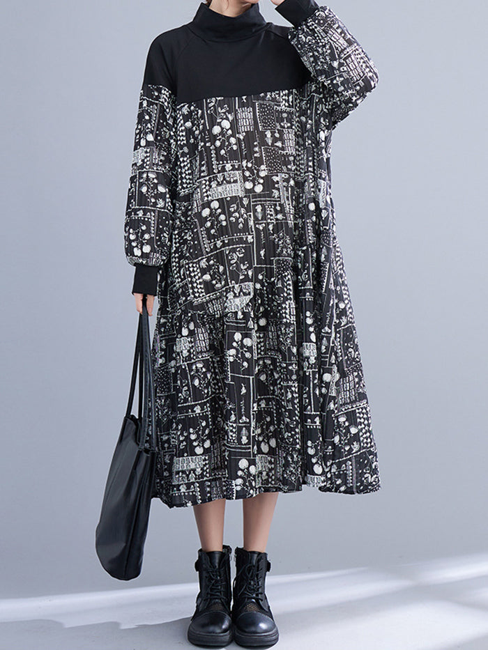 Printed Paneled Long-sleeve Dress