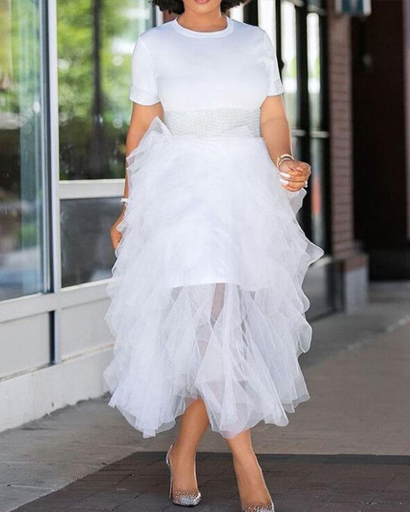 Solid Color Mesh Sleeveless Irregular Loose Dress