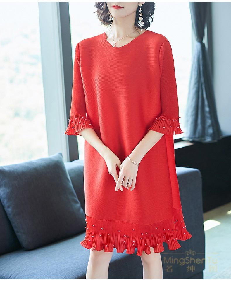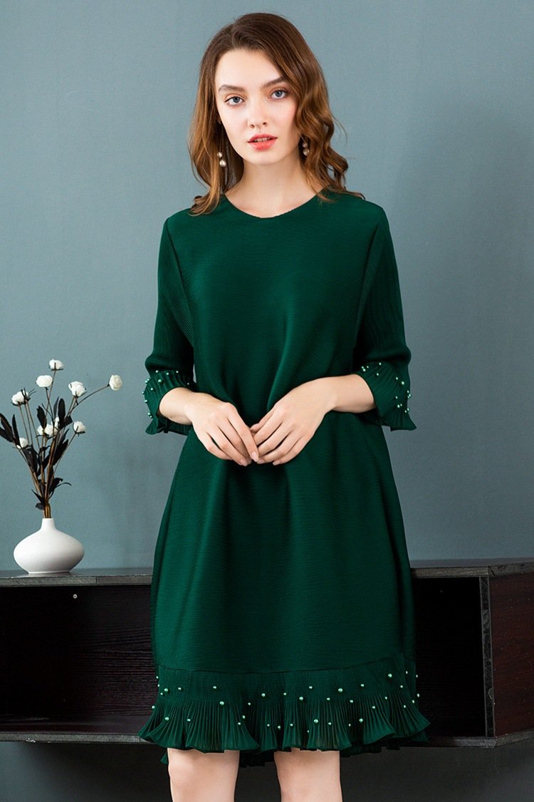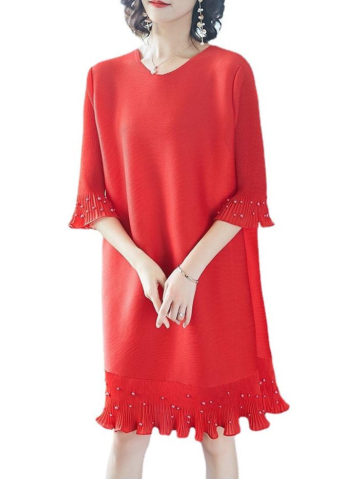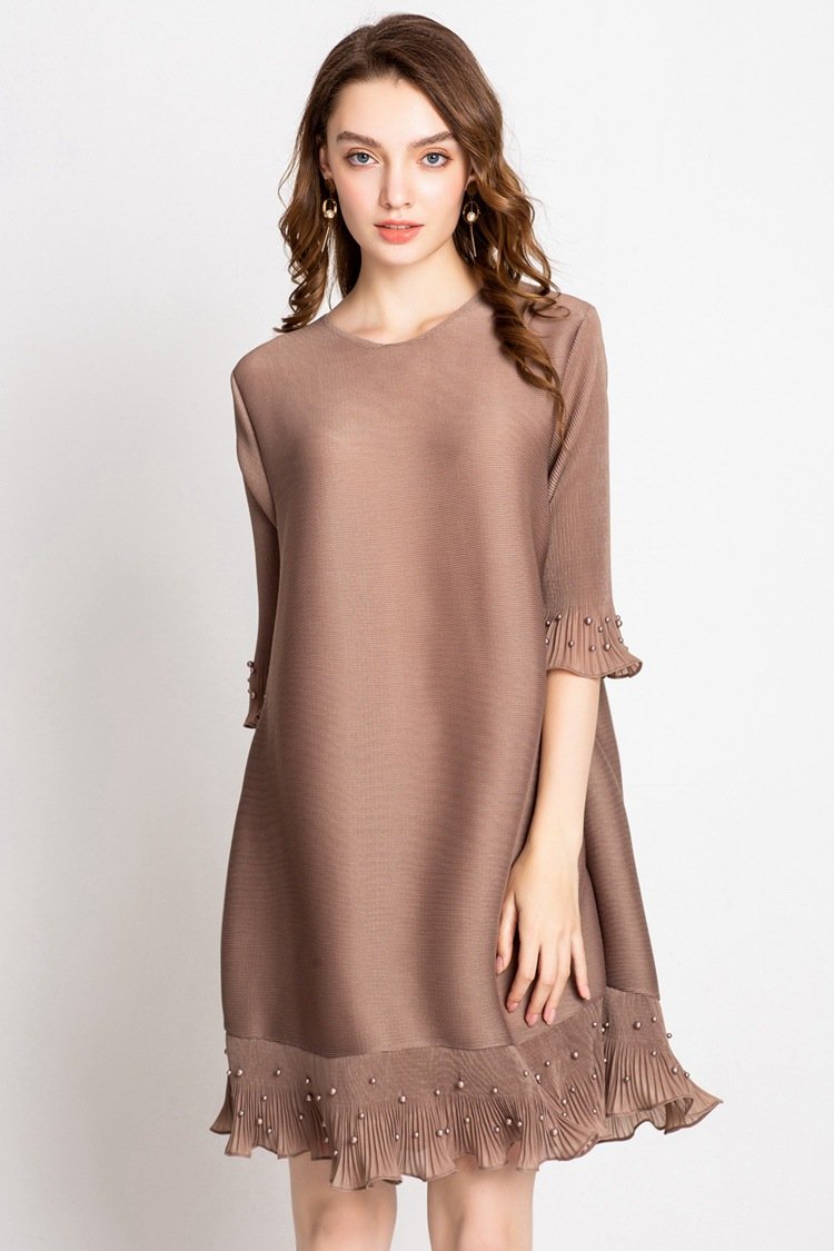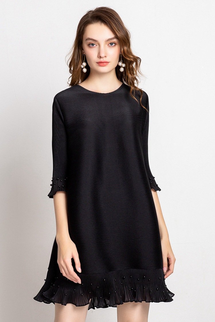 Round Neck Pleated Flare Sleeve Short Party Dress