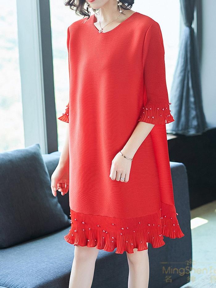 Simple Loosen Solid Cap Sleeve Knee Dress