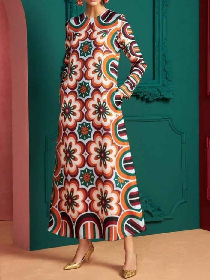 Round Neck Multi Color Elegant Dress