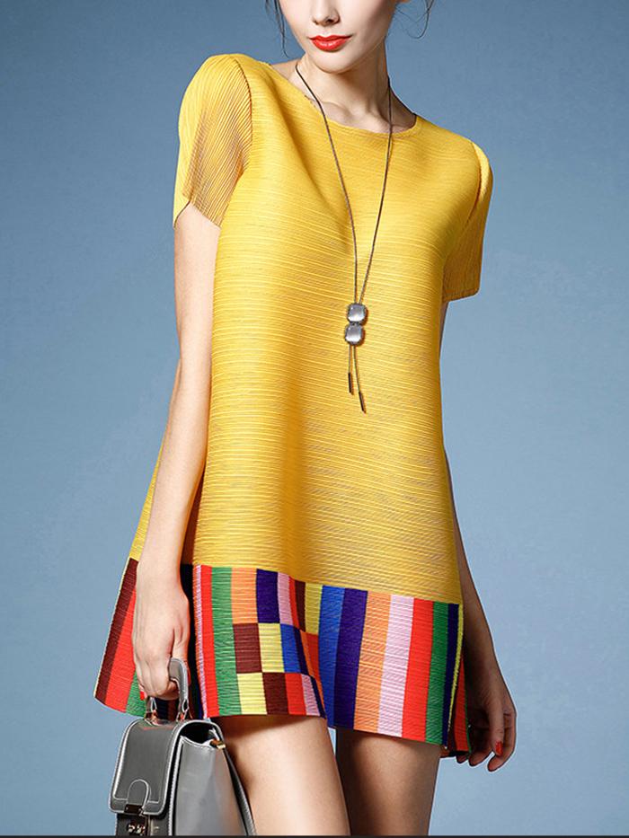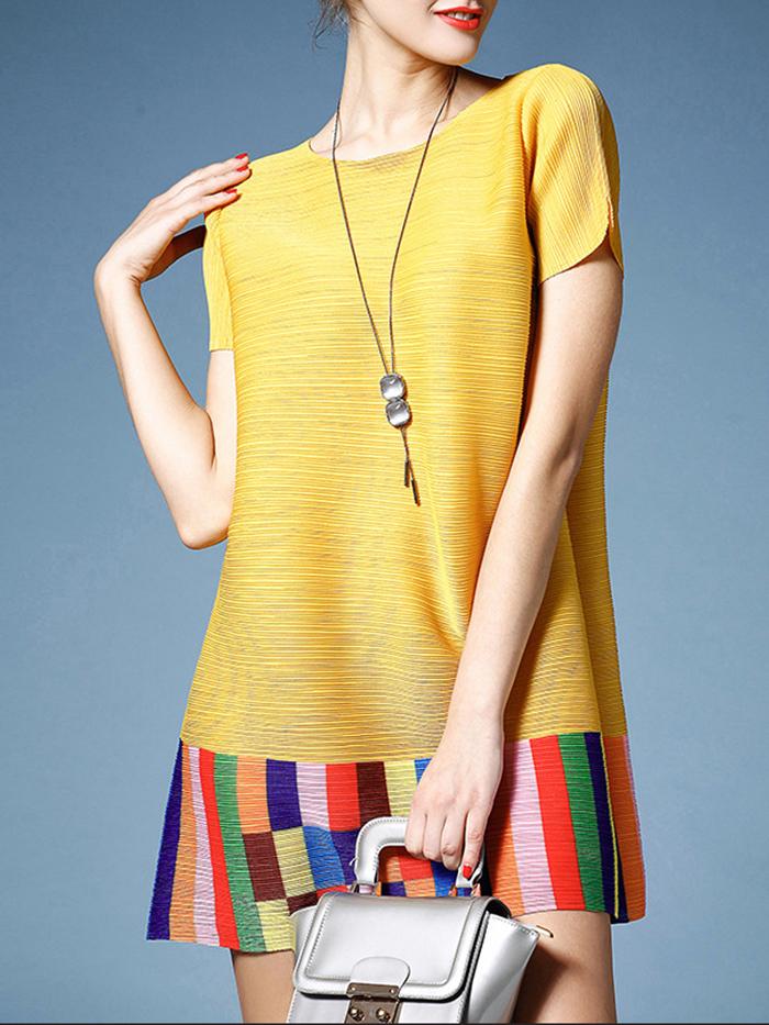 Simple Loosen Solid Cap Sleeve Knee Dress