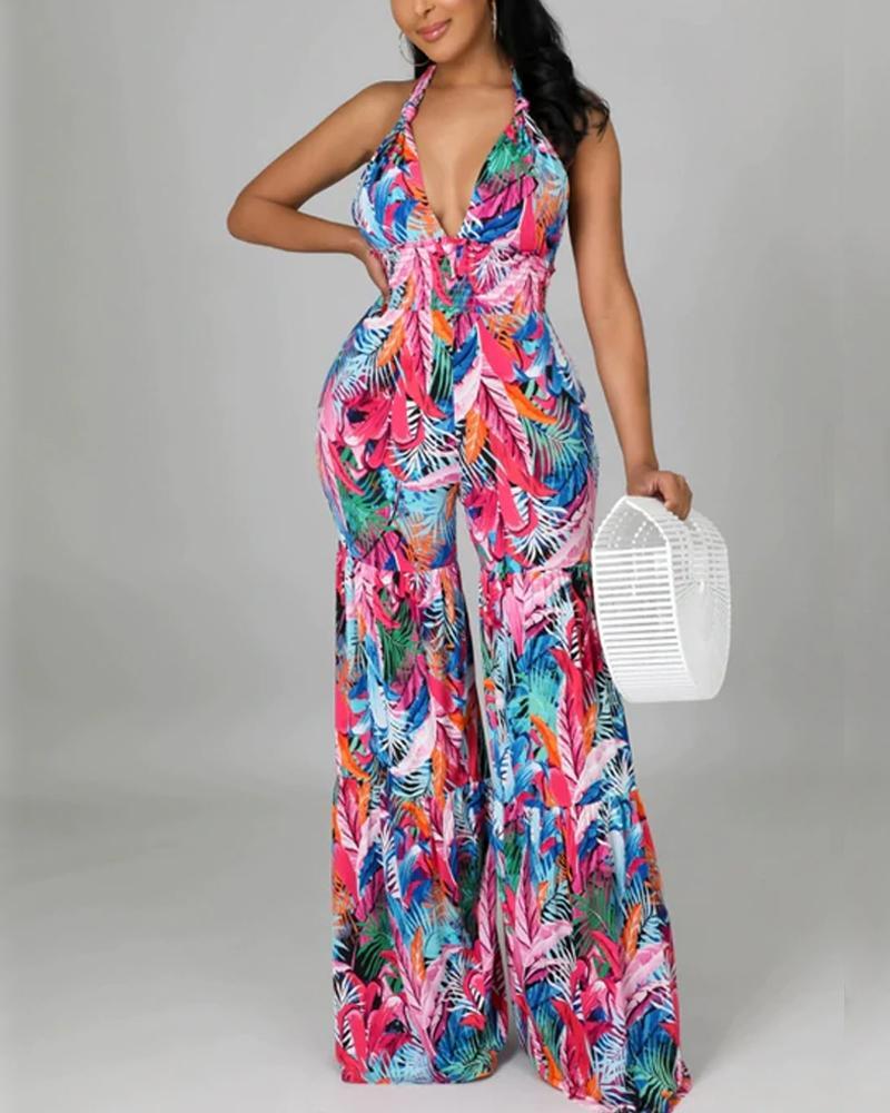 Sexy Backless Personalized Hanging Neck Lace Up Jumpsuit