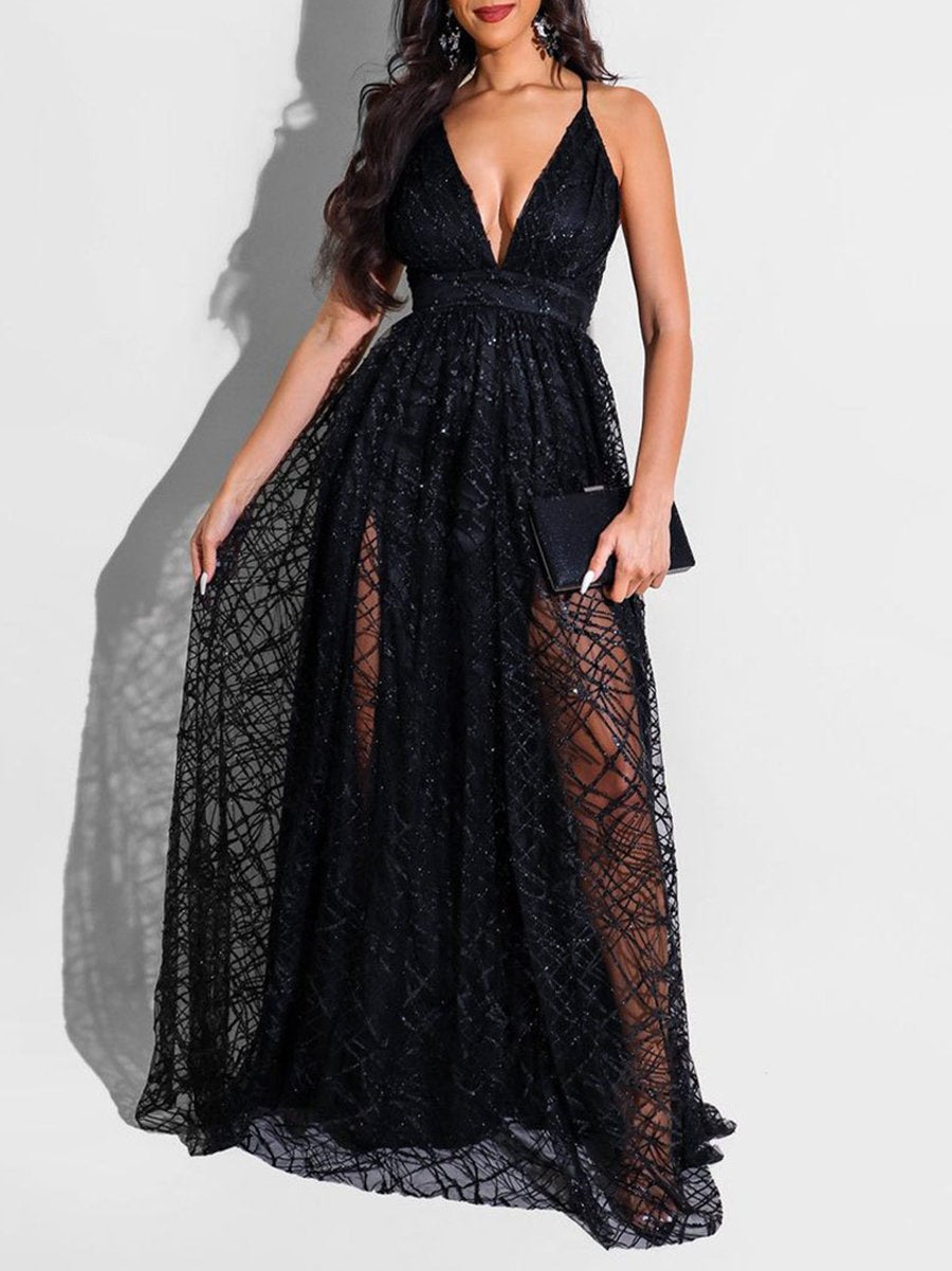 Round Neck with Cover-Up Maxi Dress Evening Dress
