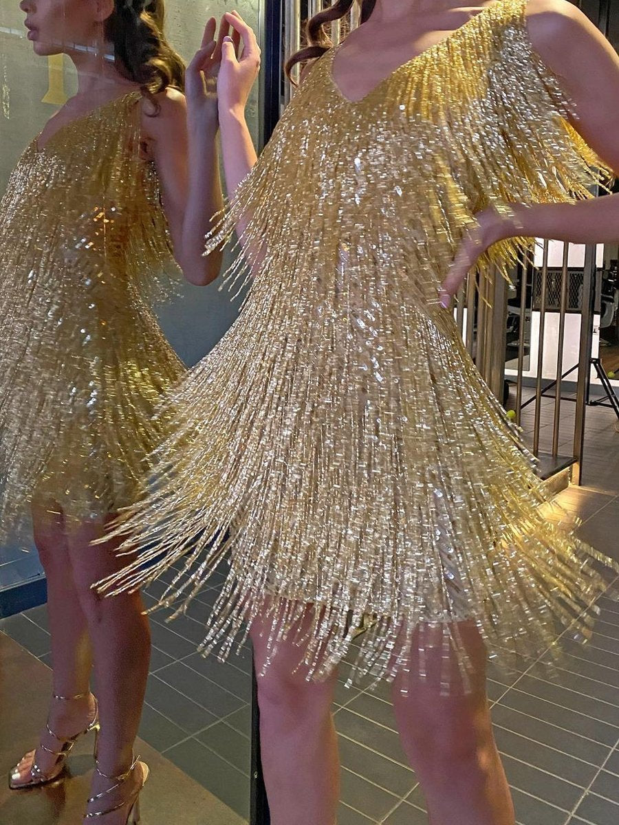 Solid Color Mesh Sleeveless Irregular Loose Dress
