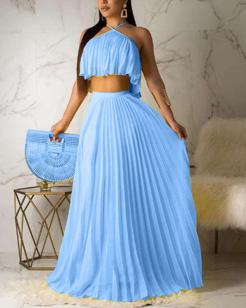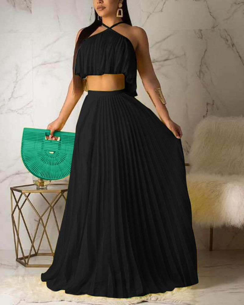 Elegant Pleated Long Sleeve Black Two Piece Suit