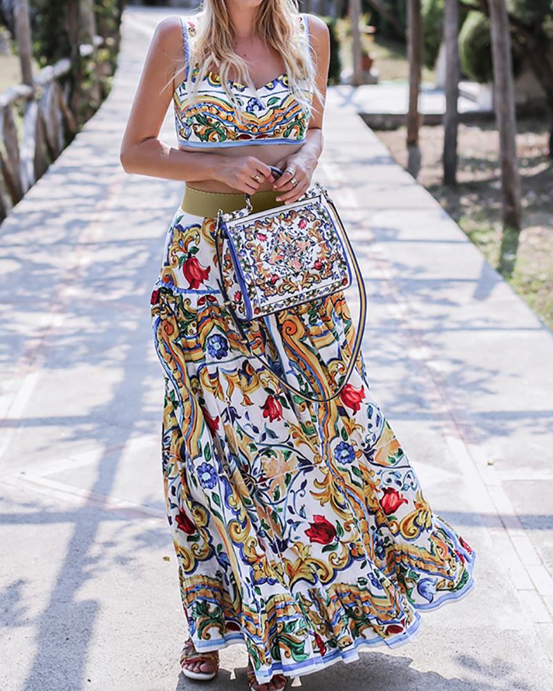 Sexy Off Shoulder Midriff-Baring Floral Printed Top Skirt Set