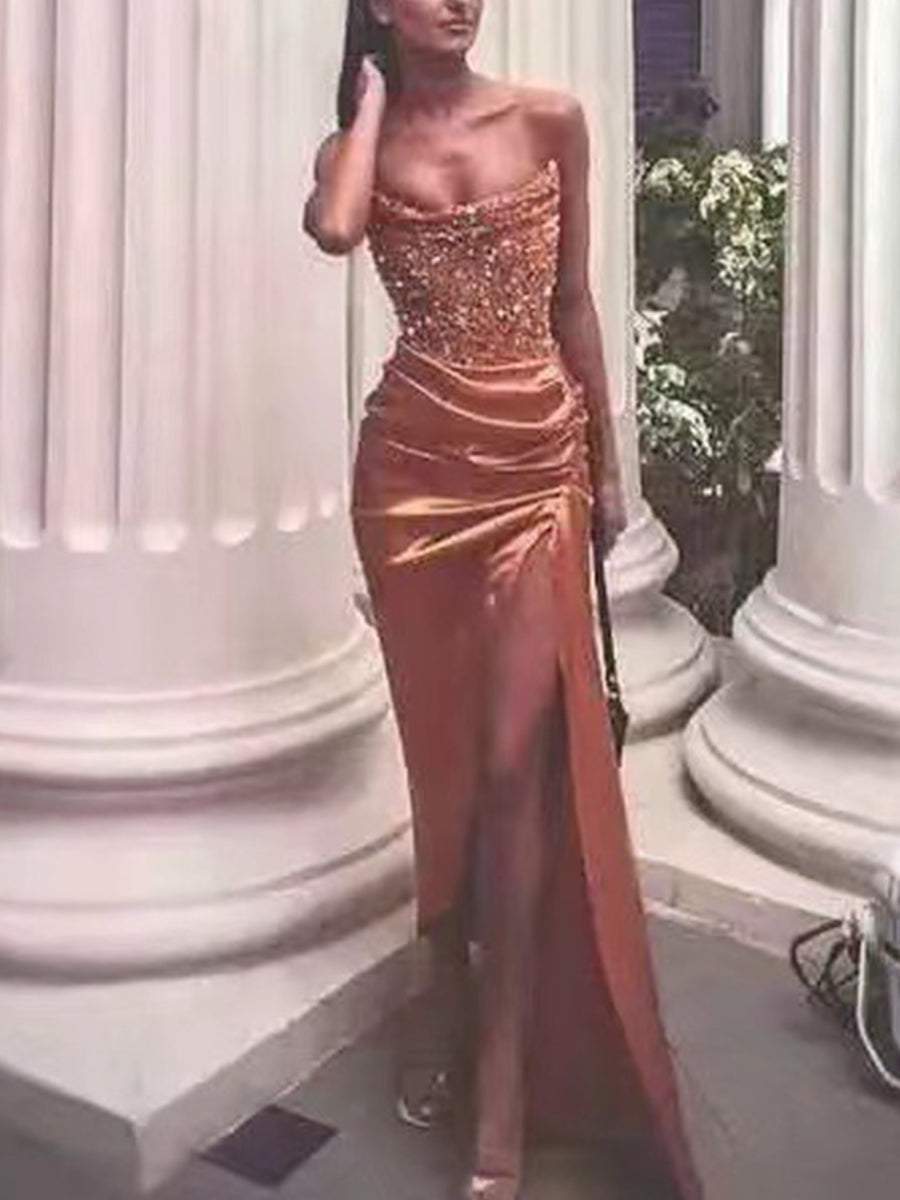 Shiny and elegant slim dress with slits