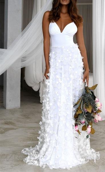White V-neck Long-sleeved Simple Dress In The Long Section