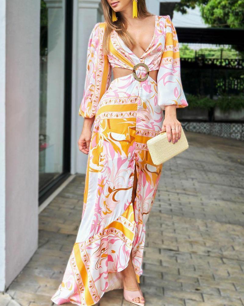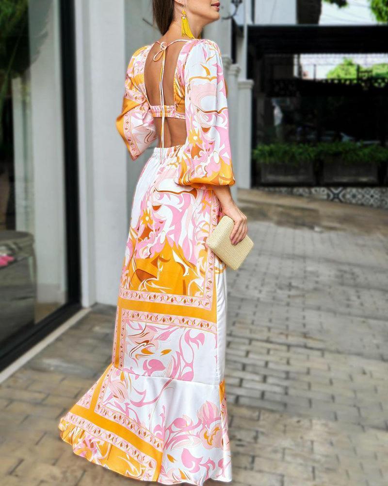 Sexy Waist Cutout Backless Slit Maxi Dress