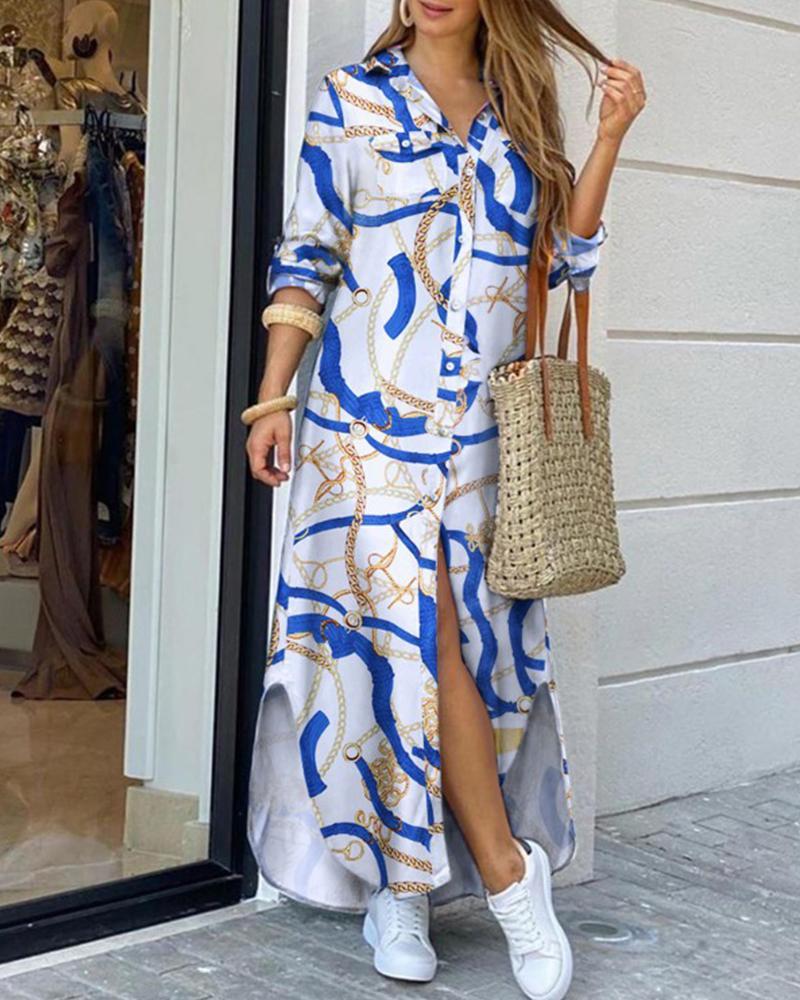 White V-neck Long-sleeved Simple Dress In The Long Section