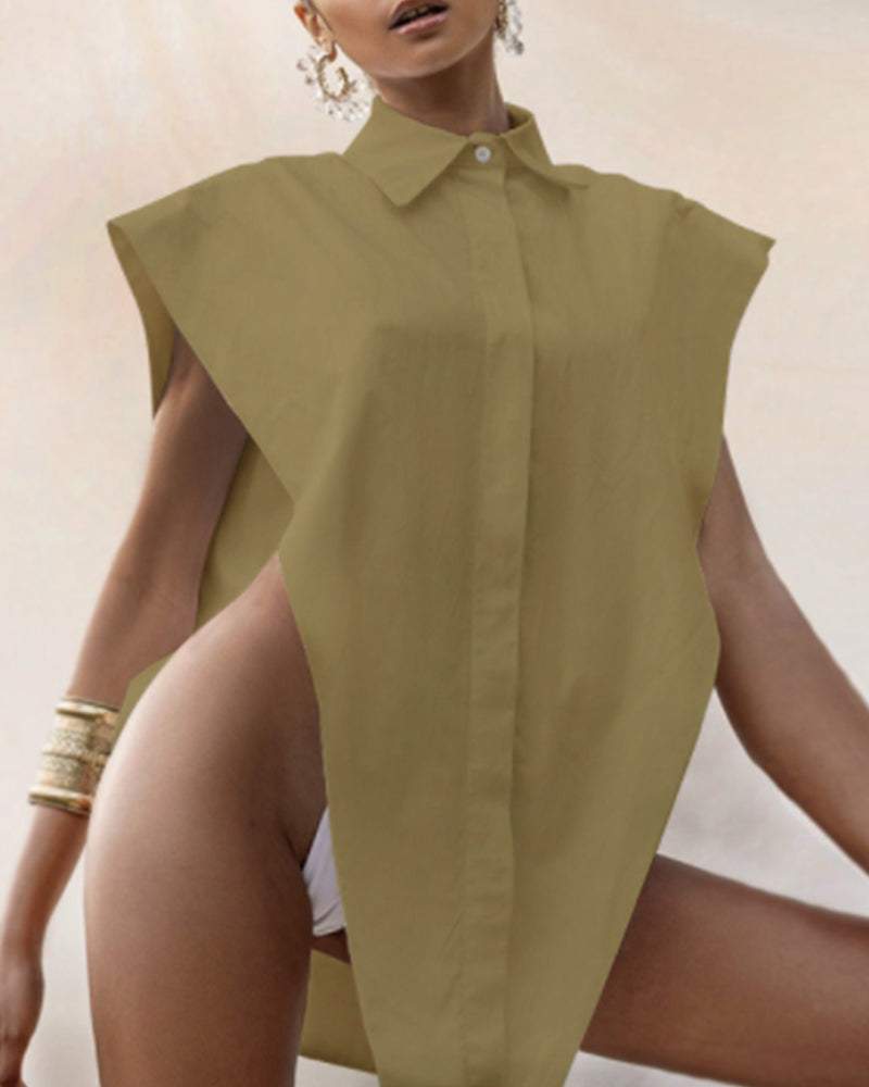 Solid Color Mesh Sleeveless Irregular Loose Dress