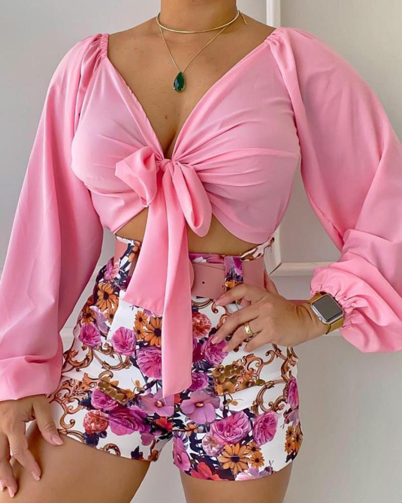 Product Name Short Long Sleeve Top & Printed Shorts Set