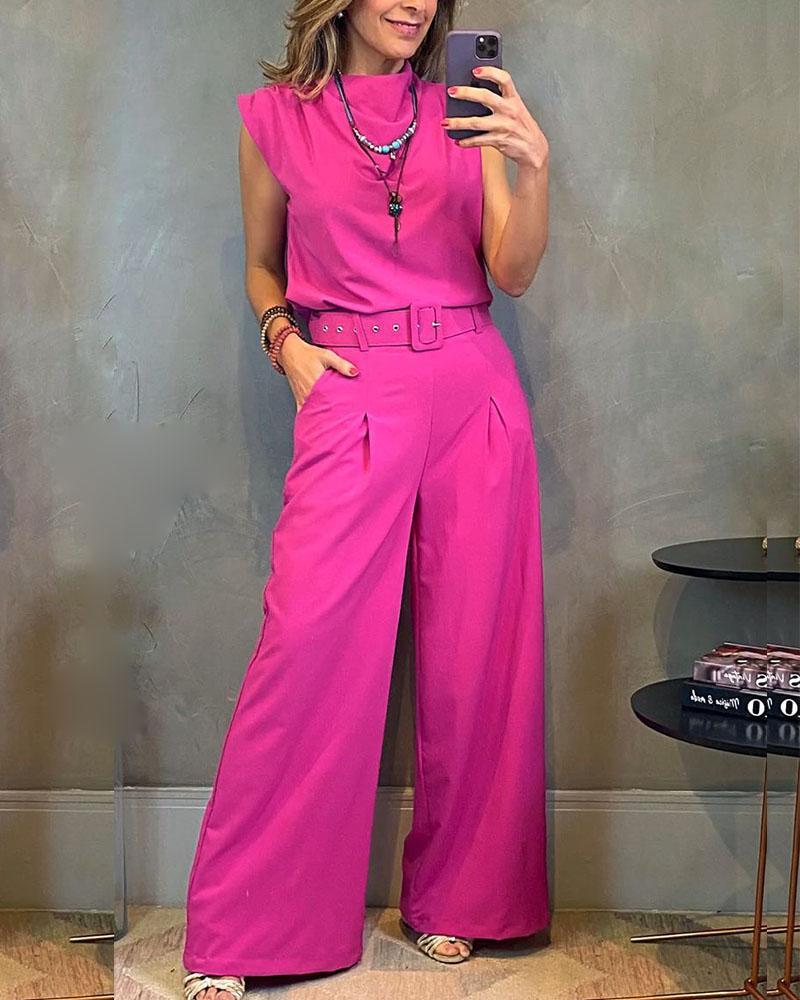 Simple Sleeveless T-shirt Pants Set
