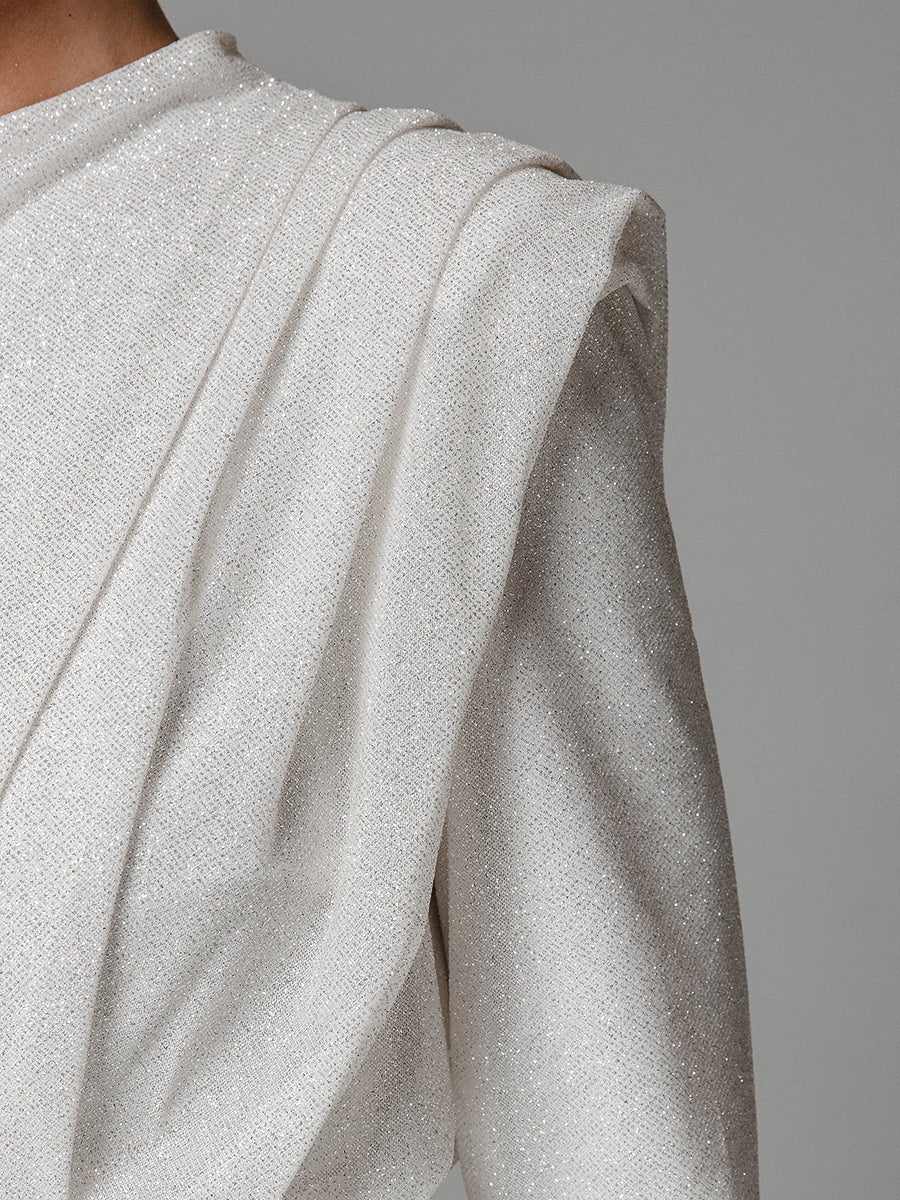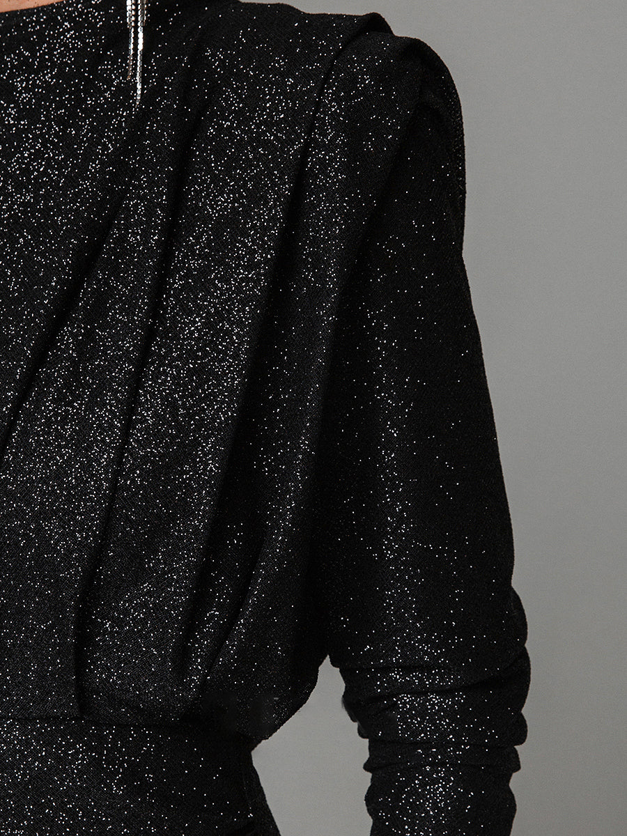 Elegant Pleated Long Sleeve Black Two Piece Suit