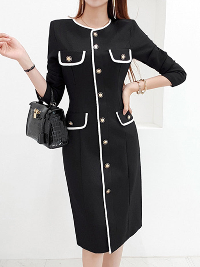 Single-breasted Color Block Fashion Dress
