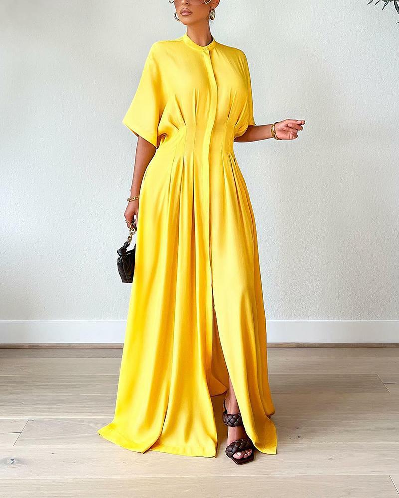 Simple Loosen Solid Cap Sleeve Knee Dress