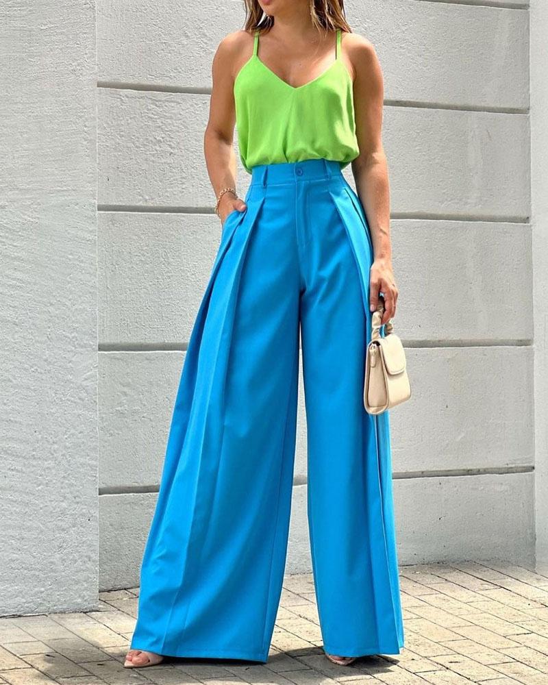 Sleeveless Solid Color Top Trousers Two Piece Set