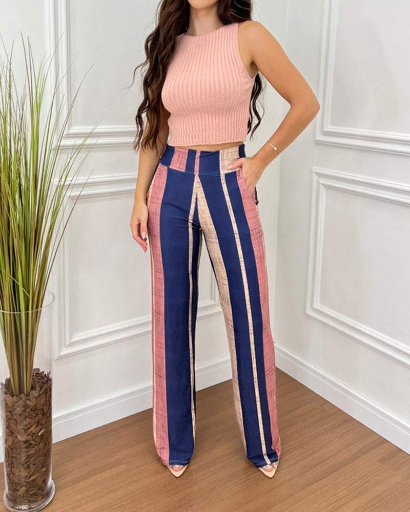 Sleeveless Tank Top + Striped Print Pants Two Piece Set