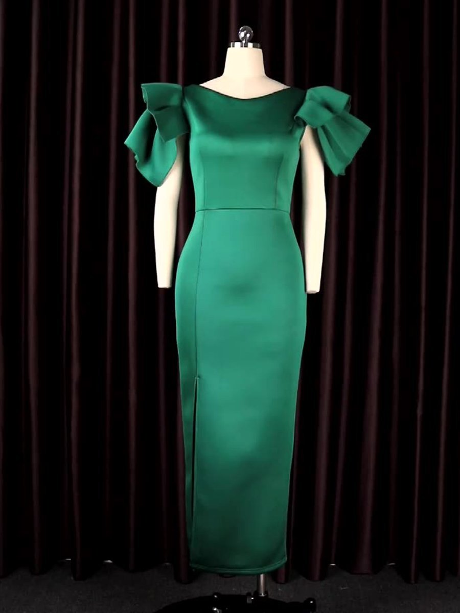 Slim Cut Split Green Evening Dress