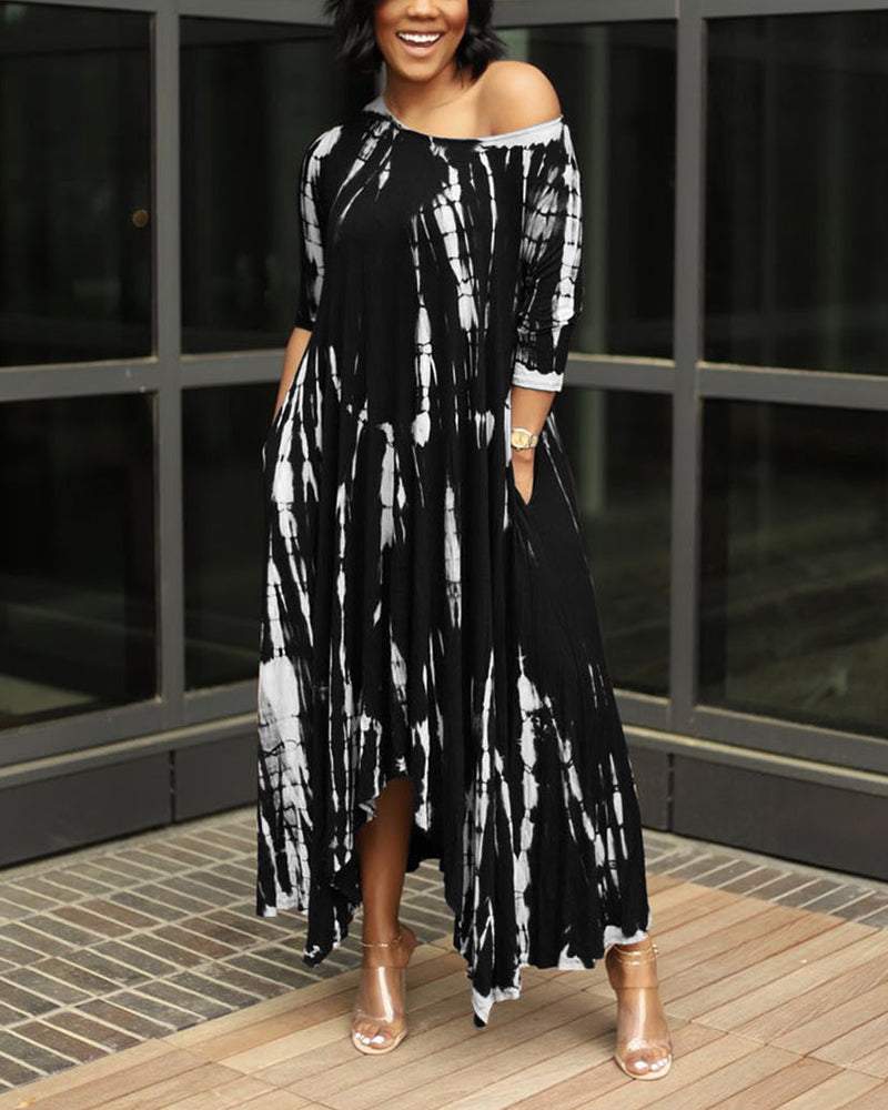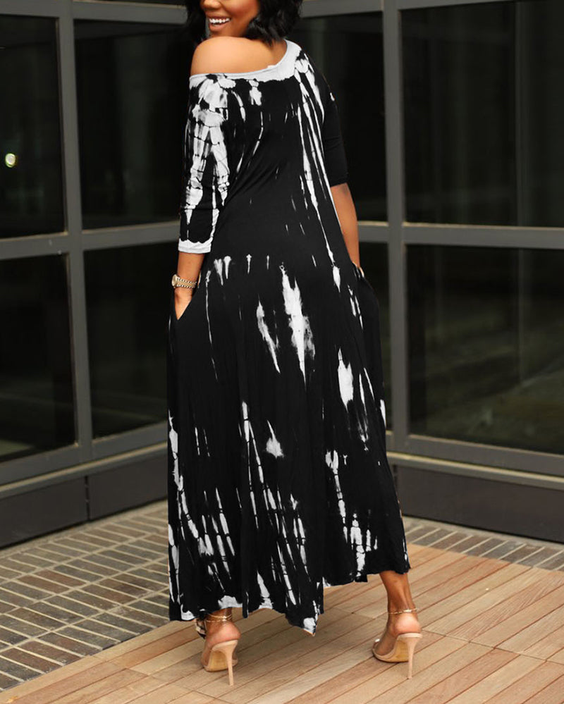 Slit Wide Neck Tie-dye Dress