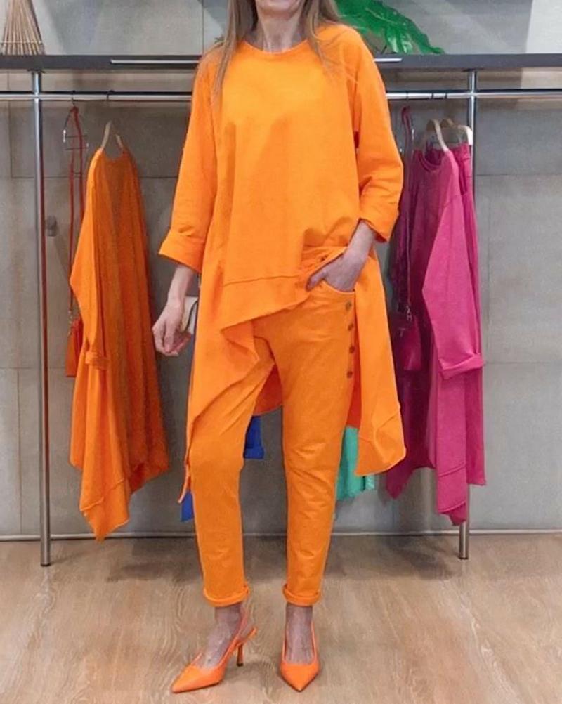 Solid color casual two-piece suit