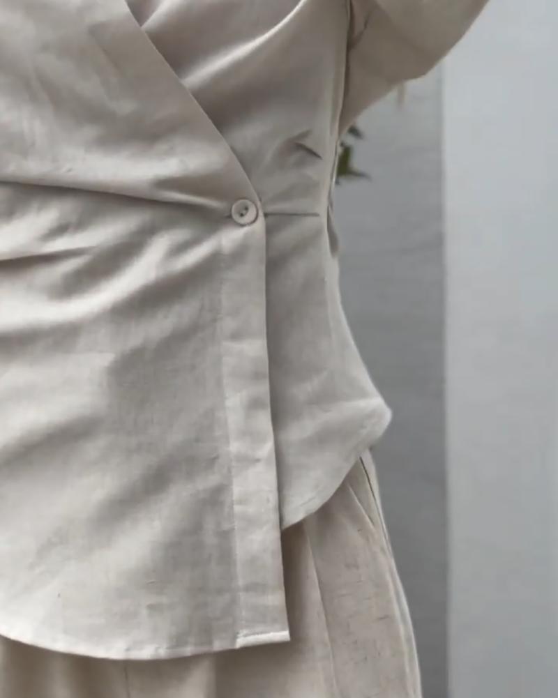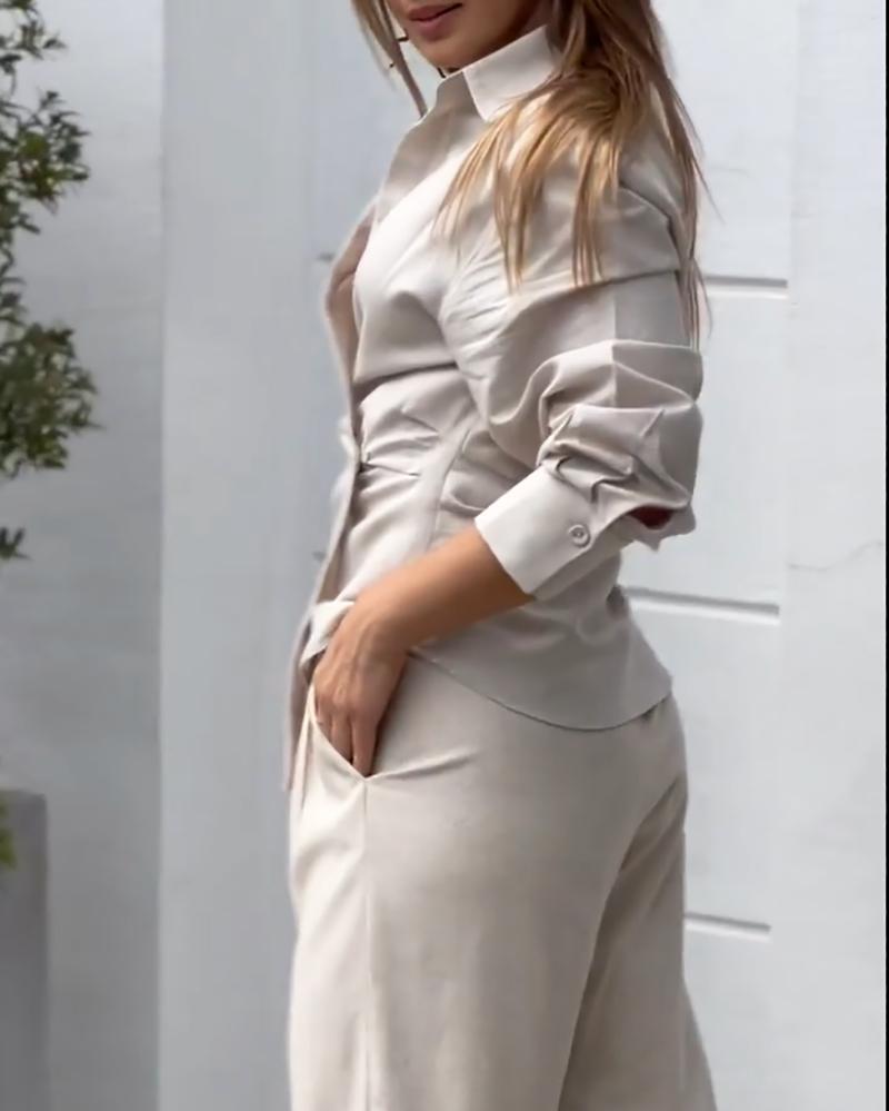 Elegant Pleated Long Sleeve Black Two Piece Suit