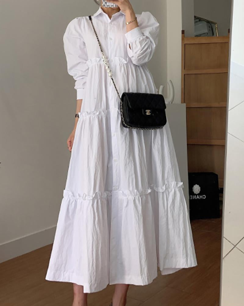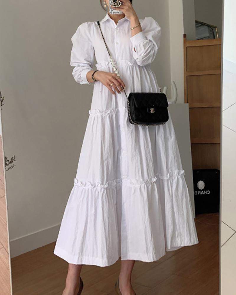 Solid color dress with lapel long sleeves