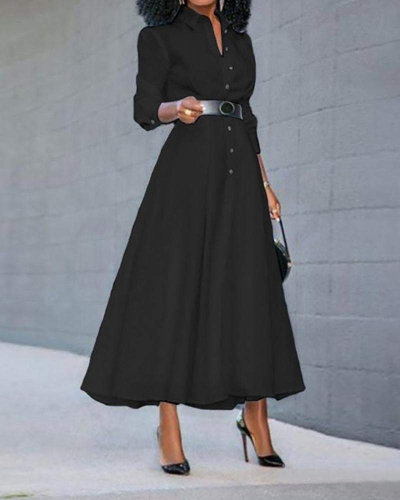 Solid Color Long Sleeve A-Line Dress