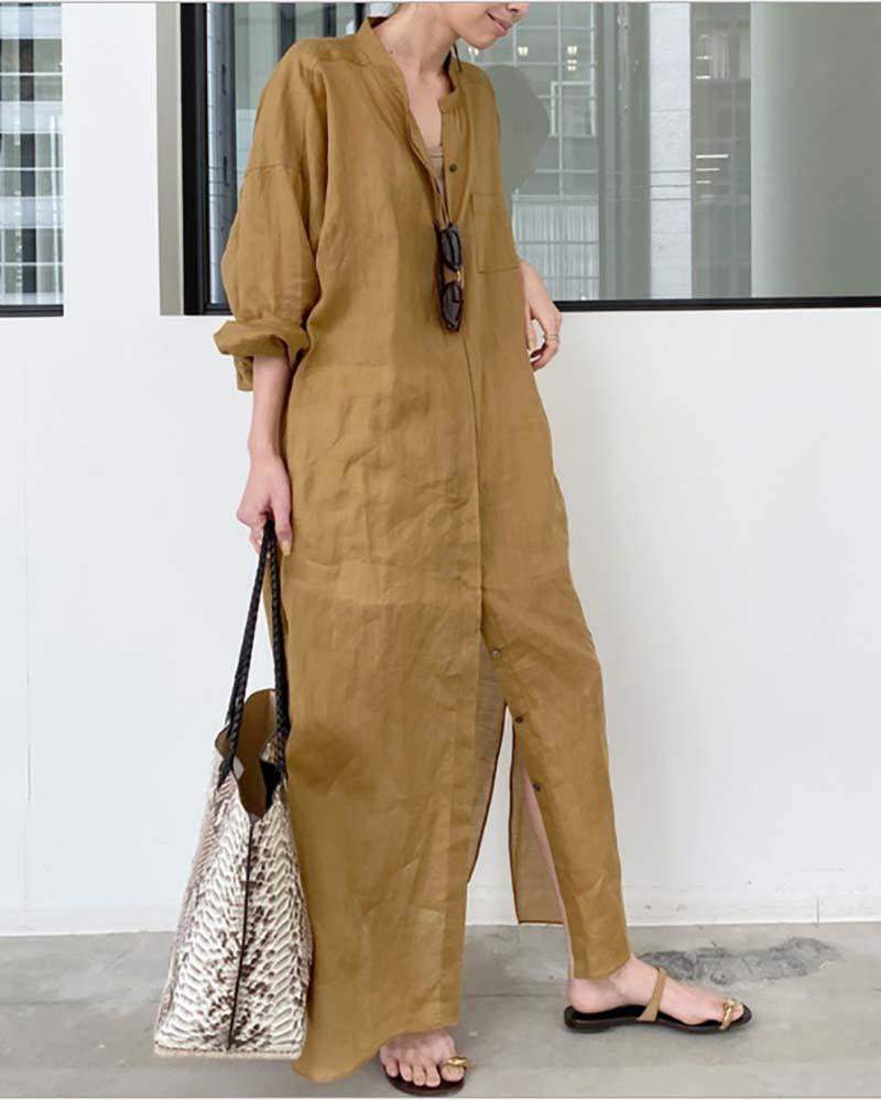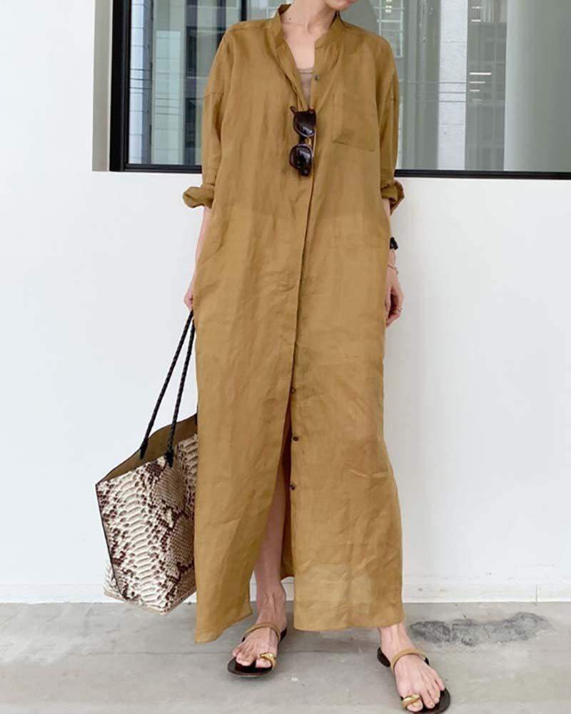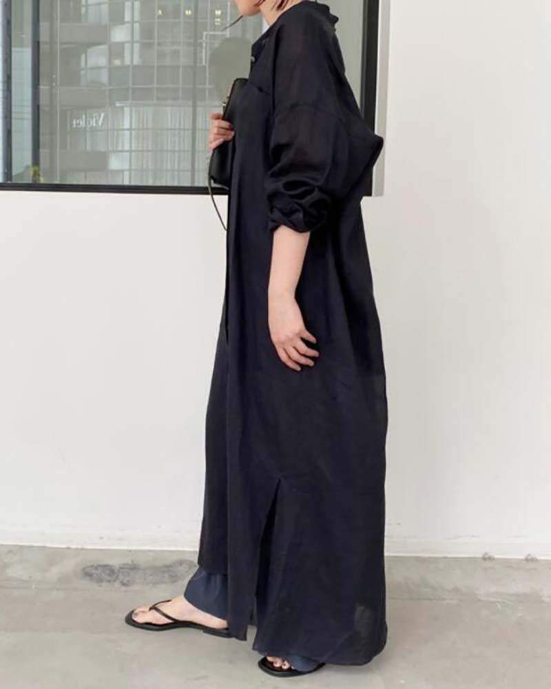 Solid Color Loose Shirt Dress