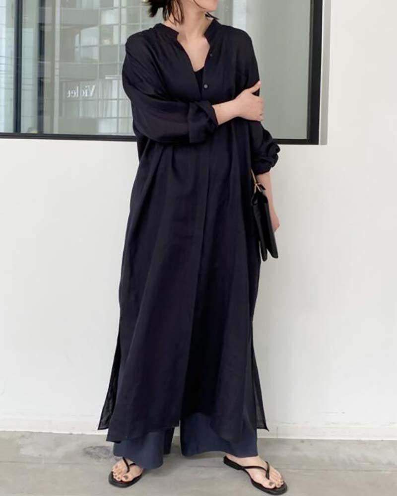 Product Name Solid Color Loose Shirt Dress