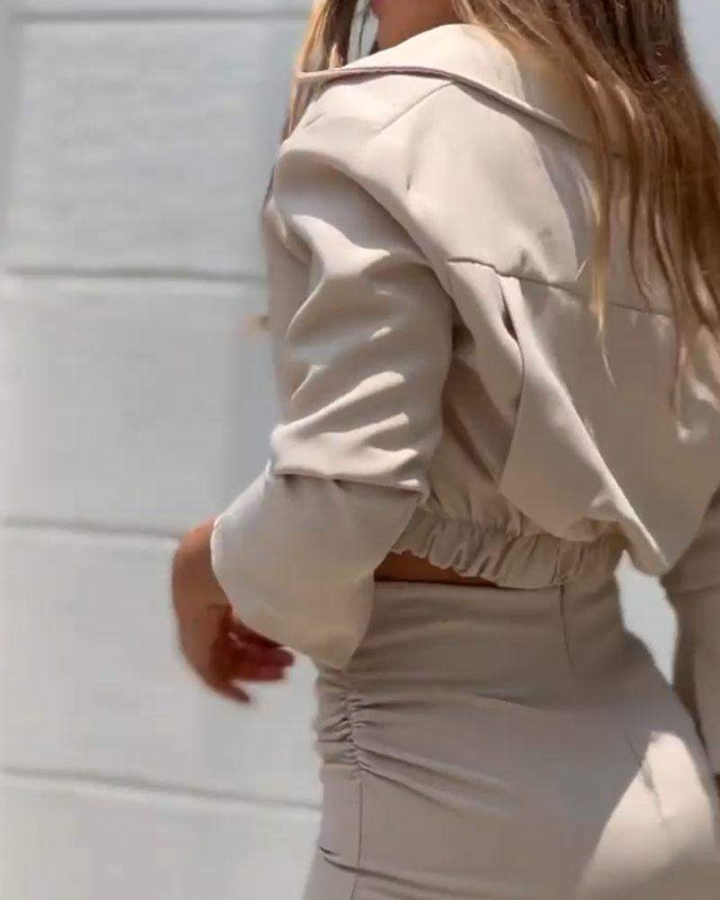 Solid Color Shirt Top Split Skirt Two Piece Set