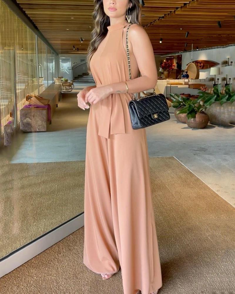 Solid Color Mesh Sleeveless Irregular Loose Dress