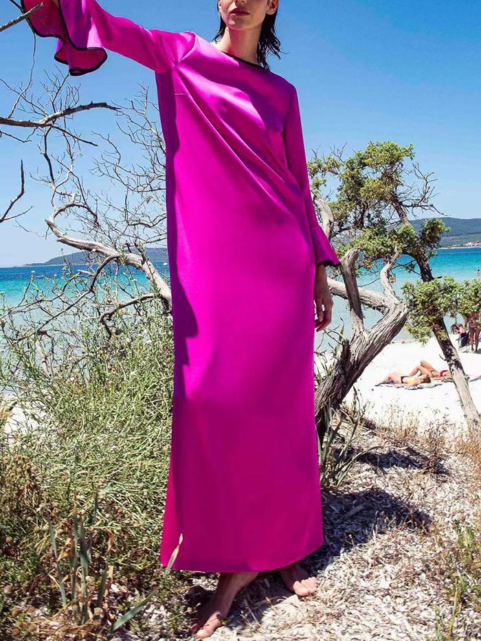 White V-neck Long-sleeved Simple Dress In The Long Section