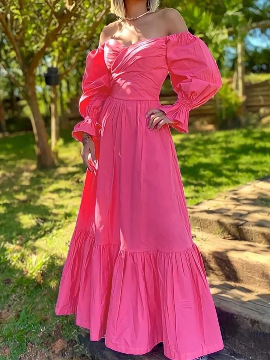 Solid V-Neck Long Sleeve Maxi Dress
