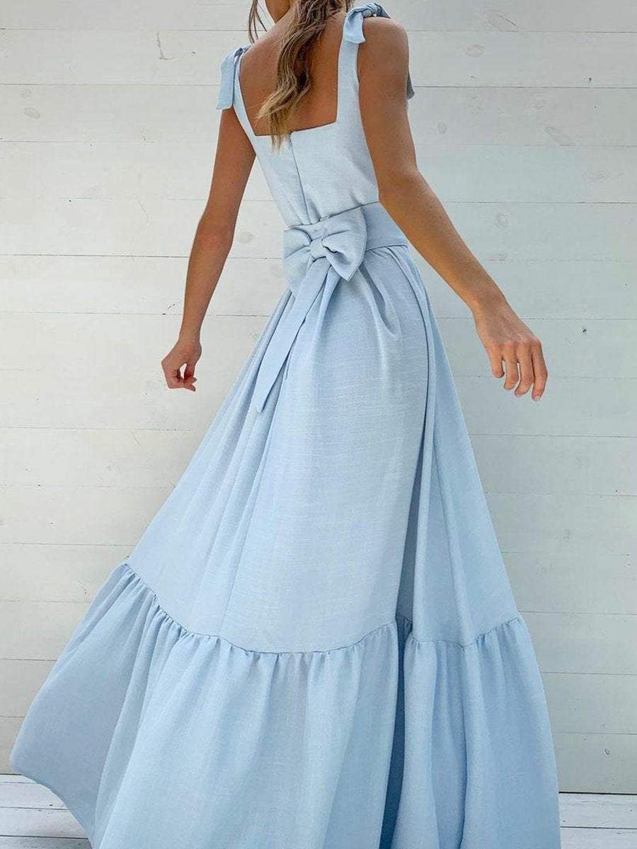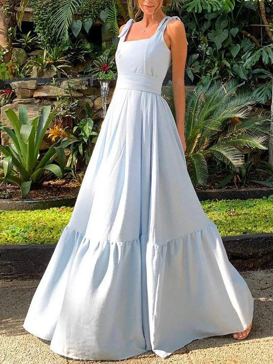 Elegant SATIN Wrap Chest Sleeveless Mid Length Evening Dress