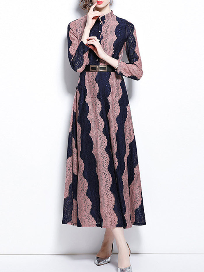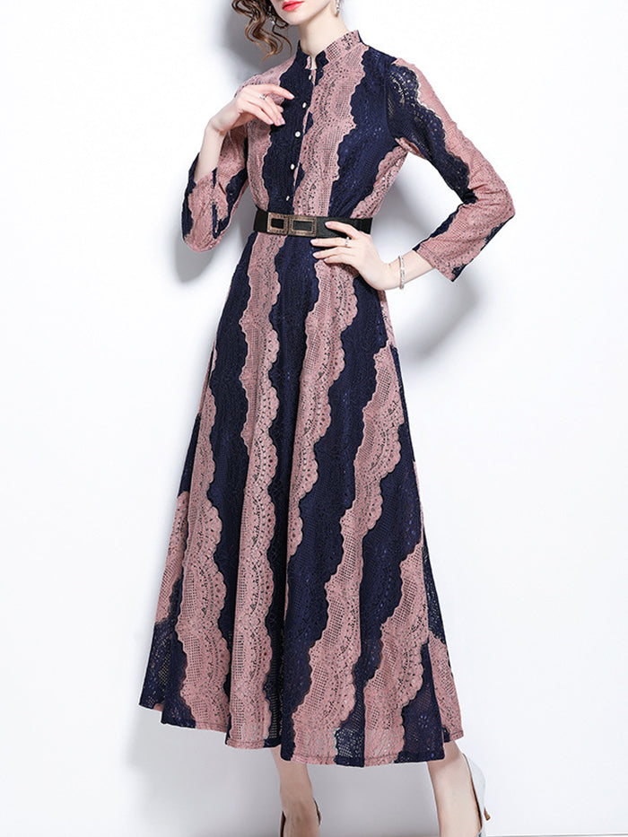 Stand-up Collar Lace Embroidered Long-sleeved Dress
