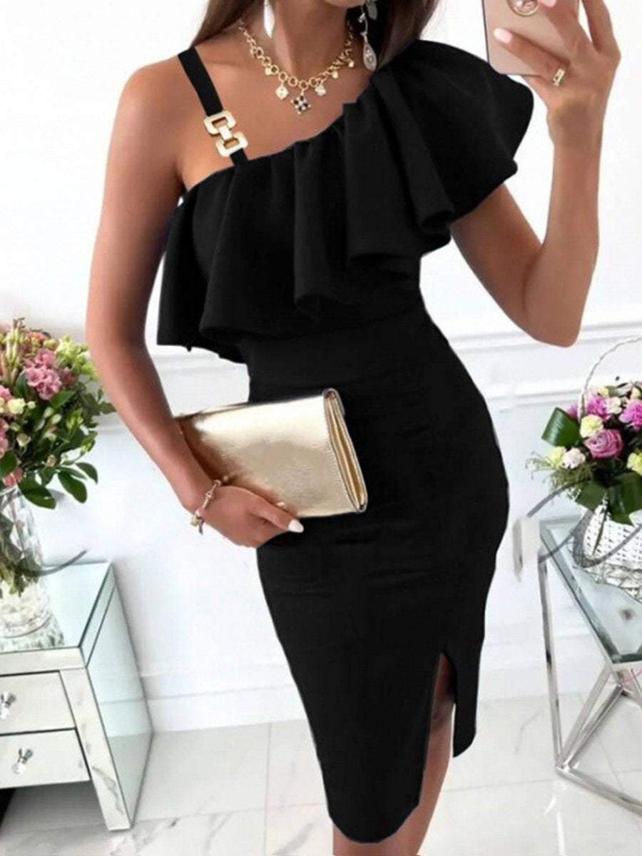 Fashion Sling Side Slit Tight-fitting Multi-color Mid-length Gown