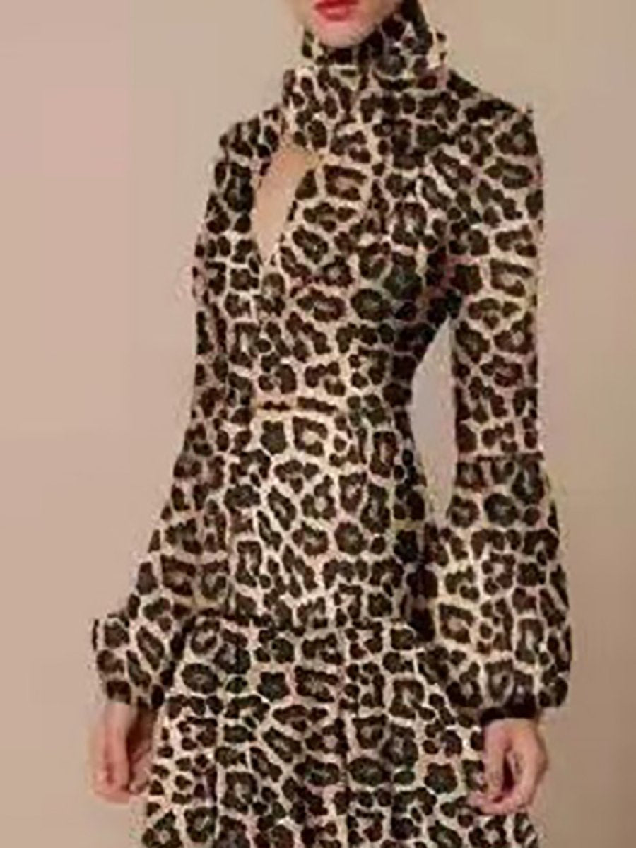 White V-neck Long-sleeved Simple Dress In The Long Section
