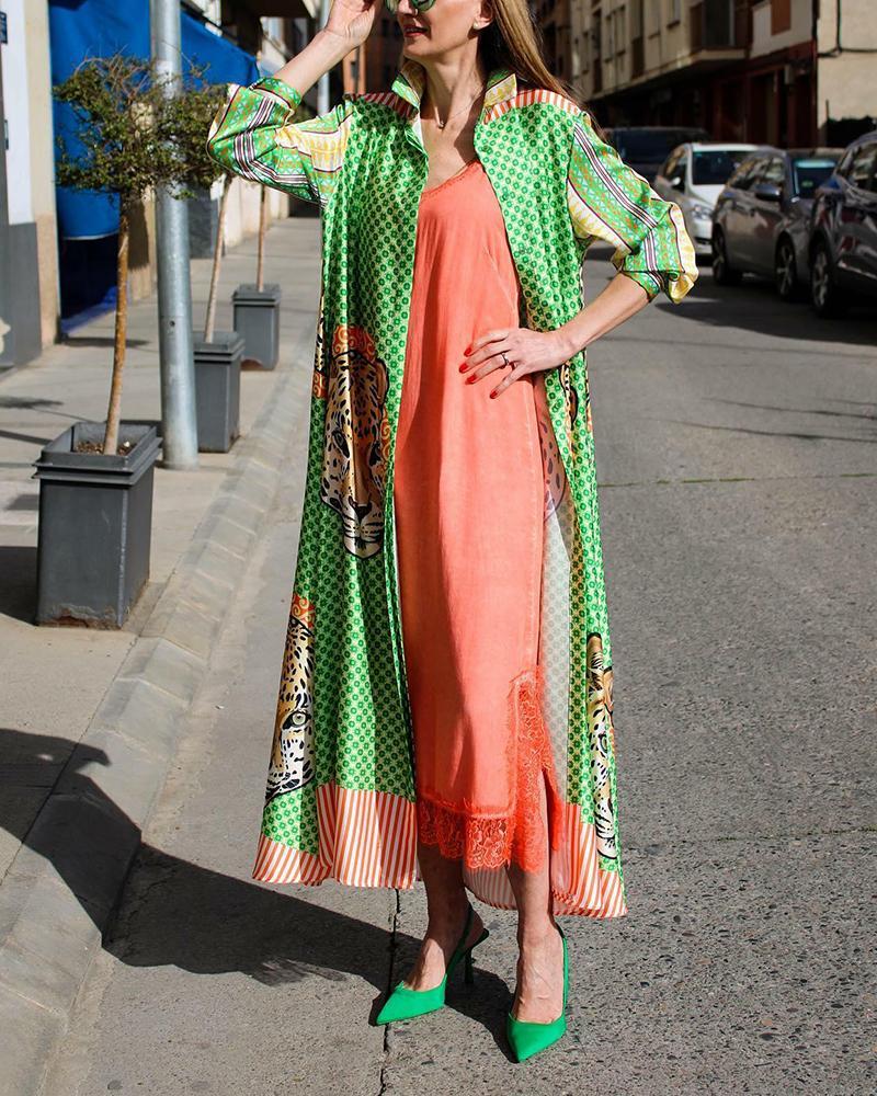 Stylish Long Sleeve Printed Shirt Dress
