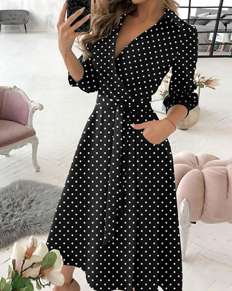 Stylish V-neck polka-dot print dress