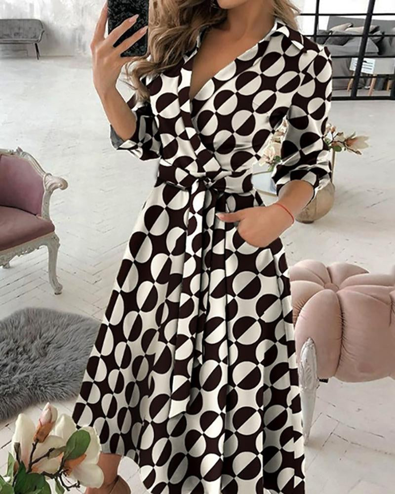 Stylish V-neck printed dress