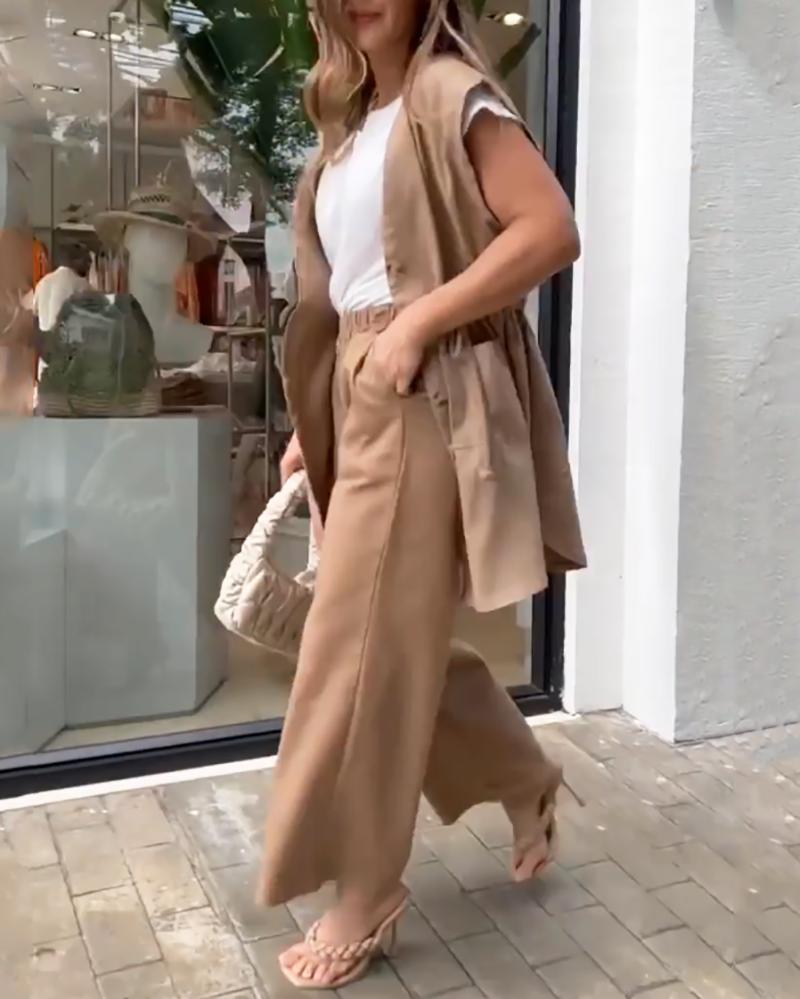 Tank Top Cardigan & Pants Two Piece Set